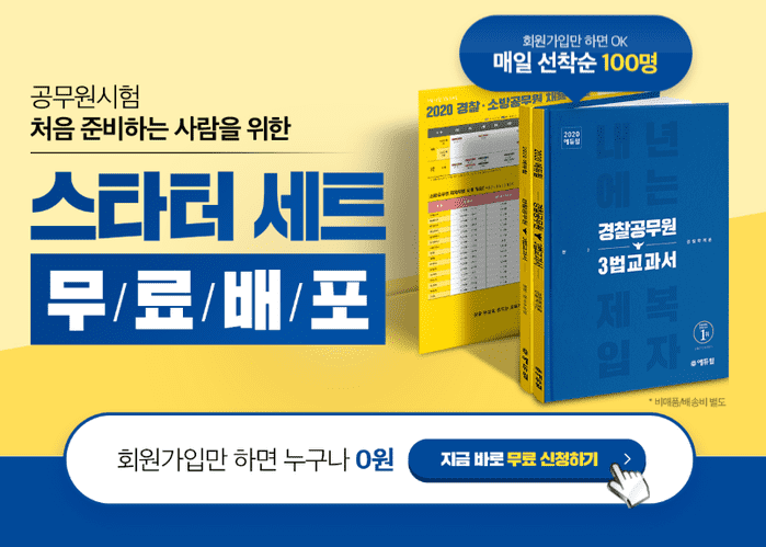 [시민일보 = 황혜빈 기자] 종합교육기업 에듀윌(대표 박명규)은 경찰공무원 시험을 처음 준비하는 초시생들을 위해 준비한 ‘스타터 세트’를 무료로 배포하고 있다고 24일 밝혔다.