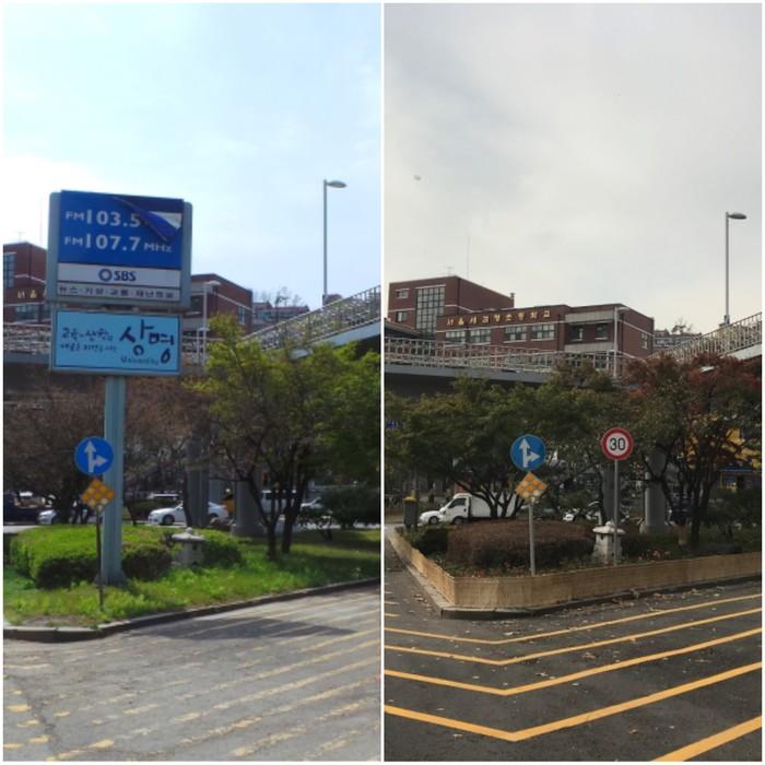 | ▲ 신영동 삼거리 정비 전·후(왼쪽부터). (사진제공=종로구청) |