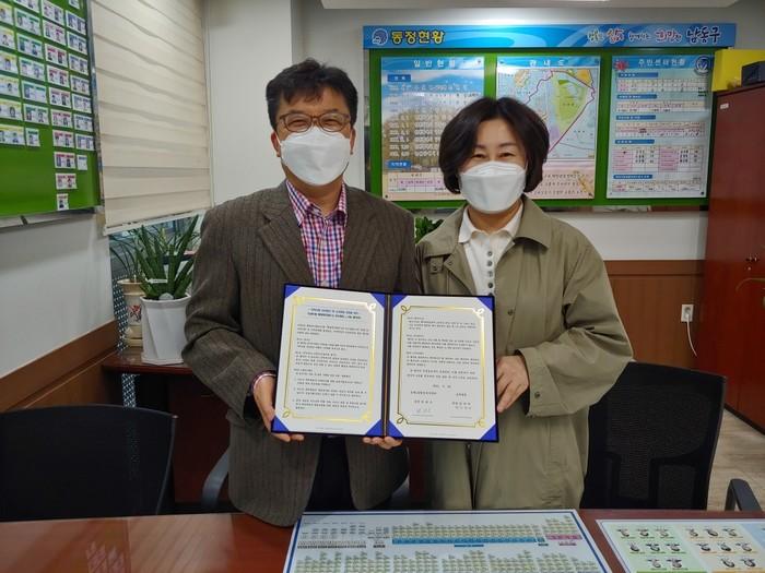 인천 남동구 논현1동행정복지센터는 최근 소통민원실에서 모두병원과 지역사회 건강증진 및 기부문화 활성을 위한 협약을 체결했다. 이번 협약을 통해 모두병원은 복지사각지대에 있는 취약계층에게 정기적 지역자원 제공을 약속하고, 지역사회 건강증진을 위해 의료비 감면 등의 서비스를 지원하기로 했다. 사진은 관계자들이 협약 체결 후 기념촬영을 하는 모습. (사진제공=인천 남동구청)
