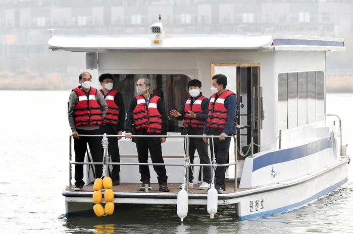 | ▲ 조무영 제2부시장이 관리선에 시승해 점검하고 있다. (사진제공=수원시청) |
