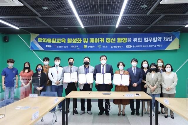 [해남=정찬남 기자] 전남 해남교육지원청(교육장 조영천)은 29일 동신대에서 유관기관 관계자 15명이 참석한 가운데 ‘동신대메이커스페이스 사업단’(단장 이동휘)과 학교교육과정과 연계한 신산업 교육프로그램 운영 및 시설·인력 지원을 위한 교류협약을 체결했다고 밝혔다.