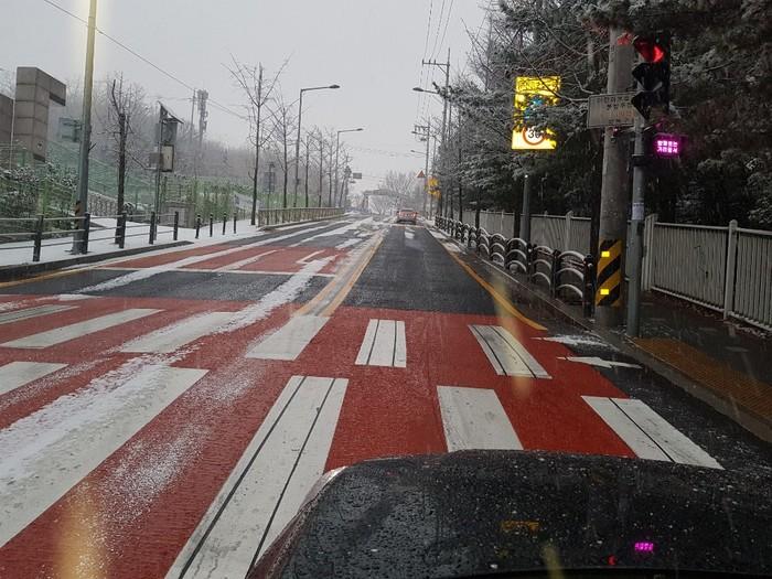 | ▲ 친환경 열선시스템이 설치돼 가동되고 있는 지역내 도로 모습. (사진제공=성북구청) |