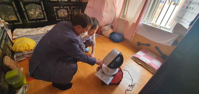 경기 하남시 덕풍3동 지역사회보장협의체는 최근 홀몸노인 등 4가구에 겨우내 사용한 침구류 등을 세탁·건조해 전달하는 이불빨래 봉사와 함께 냉방기구 없이 열악한 주거환경에서 거주하는 취약계층 10가구를 선정해 써큘레이터를 지원했다. 사진은 대상 노인에게 써큘레이터 사용법을 설명해주고 있는 모습. (사진제공=하남시청)