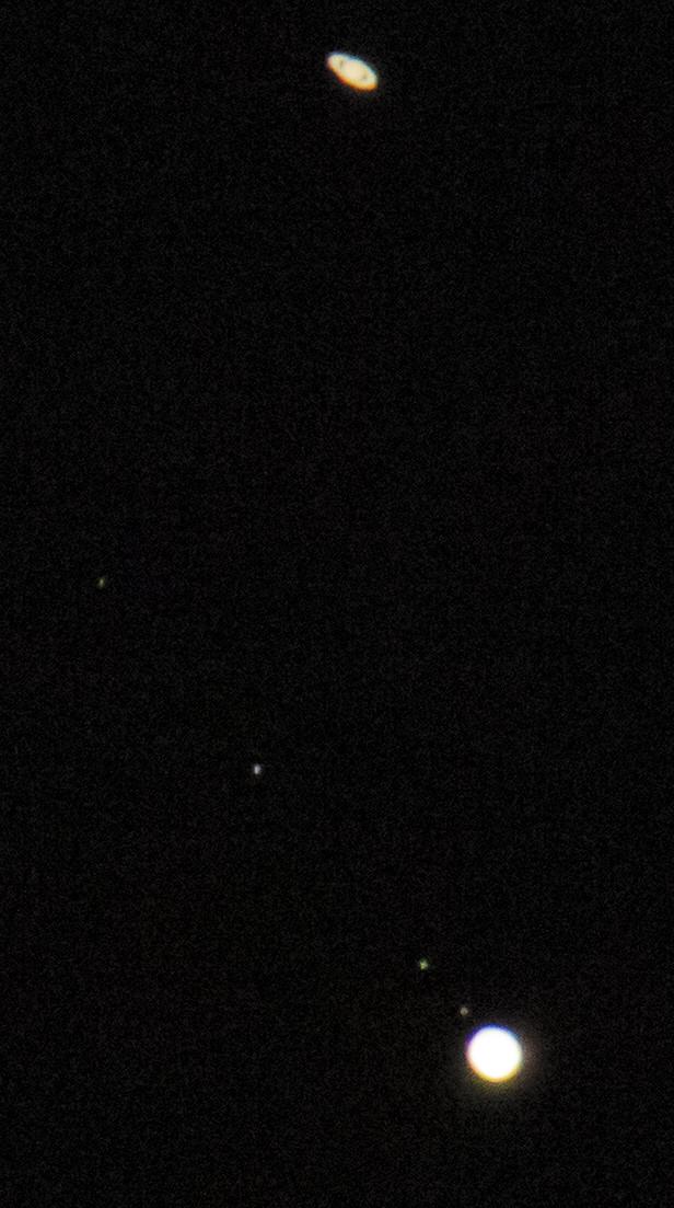 20일 오후 경기 고양시에서 바라본 하늘에 목성과 토성이 서로 근접해 빛나고 있다. 목성과 토성이 대근접한 것은 1623년 이후 400년 만이다. 다음 두 행성의 대근접은 2080년 3월15일이다.