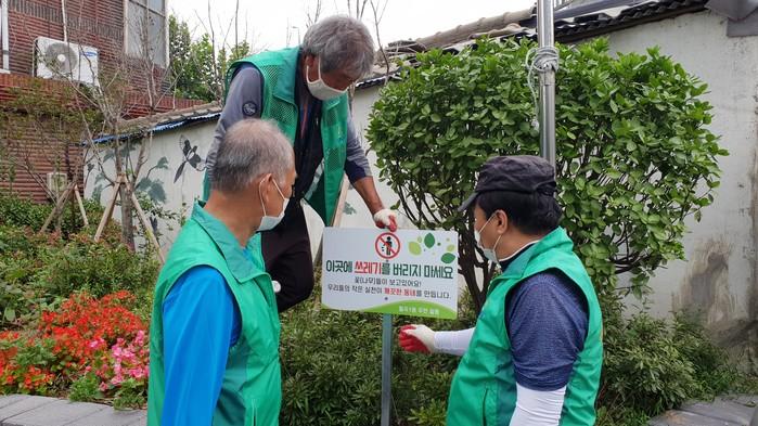 [시민일보 = 홍덕표 기자] 서울 성북구(구청장 이승로) 월곡1동 새마을지도자협의회 회원들이 최근 깨끗한 거리와 골목길을 만들기 위해 조성된 작은 화단 10여곳에 주민들의 마음을 담은 화단 보호 표지판을 설치했다.