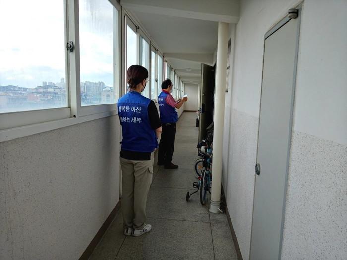 충남 아산시가 이달부터 지방세 체납실태조사단 운영을 시작해 100만원 이하 소액체납자를 대상으로 거주 여건 및 소득수준 등 생활실태에 대한 방문 조사를 한다. 조사단은 체납자의 담세력을 확인하고 체납 사실을 안내하면서 체납상담자의 역할도 하게 된다. 사진은 지방세 체납실태조사단이 활동하고 있는 모습. (사진제공=아산시청)