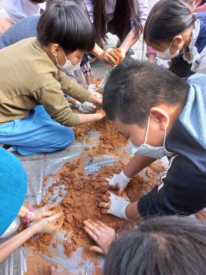 | ▲ 흙공을 만드는 학생들 |