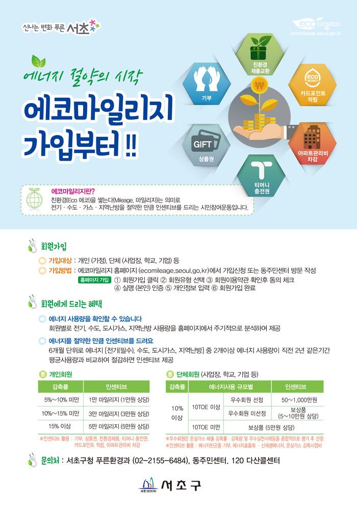[시민일보 = 이대우 기자] 서울 서초구(구청장 조은희)가 ‘에코마일리지 가입’을 독려하고 나섰다.