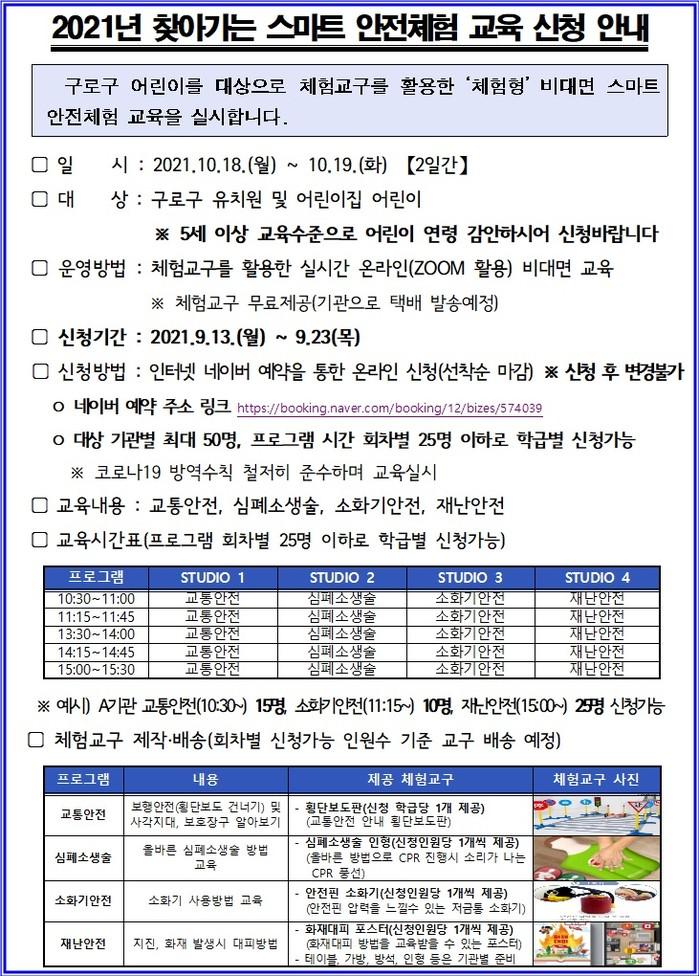 신청을 원하는 기관은 오는 23일 오후 6시 네이버 예약 ‘찾아가는 스마트안전체험교육(구로구)’을 통해 신청하면 된다.