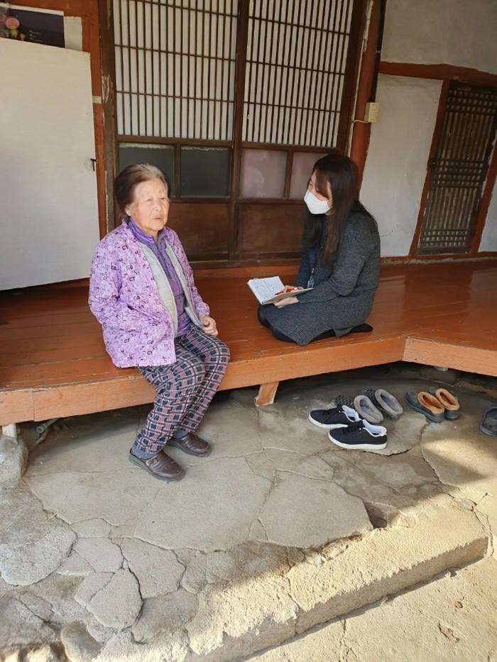 경기 양평군 양동면은 최근 ‘사랑의 수세미즙 전달’ 행사를 진행했다. 이날 참여자들은 초록영농조합에서 기탁한 수세미즙 120상자를 지역내 저소득층 홀몸노인 가구를 방문해 전달하고 안부를 확인했다. 사진은 대한적십자 회원이 홀몸노인 가구를 방문해 대화를 하고 있는 모습.(사진제공=양평군청)