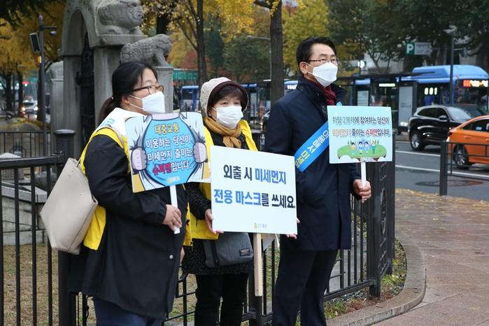 | ▲ 미세먼지 저감 캠페인에 나선 김영종 구청장과 관계자들. (사진제공=종로구청) |