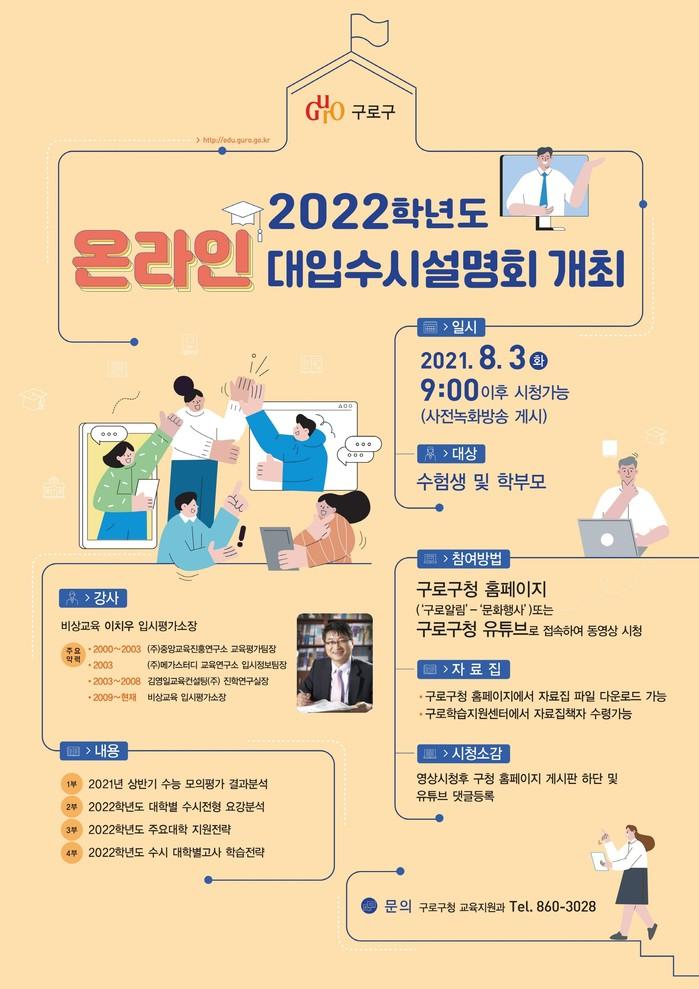 [시민일보 = 이대우 기자] 서울 구로구(구청장 이성)가 2022학년도 온라인 대입 수시설명회를 마련한다.