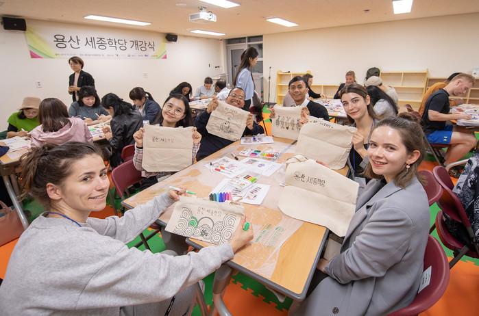 용산구가 23일 꿈나무종합타운에서 '용산 세종학당' 개강식을 열고 시범운영에 들어갔다. 세종학당은 전세계 60개국에 설치된 한국어·한국문화 보급 기관으로 국내에 설치된 건 이번이 처음이다. 사진은 수업에 참여하고 있는 외국인들 모습. (사진제공=용산구청)