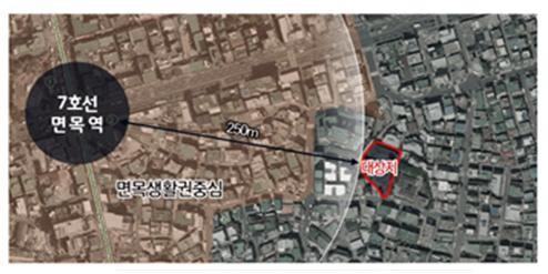 | ▲ 도시재생 인정사업으로 건립되는 면목동 297-28 일대 위치도.(사진제공=중랑구청) |