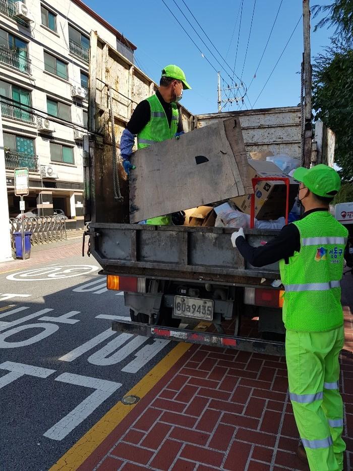 | ▲ 구 환경미화원이 대형생활폐기물을 수거하고 있는 모습. (사진제공=성동구청) |