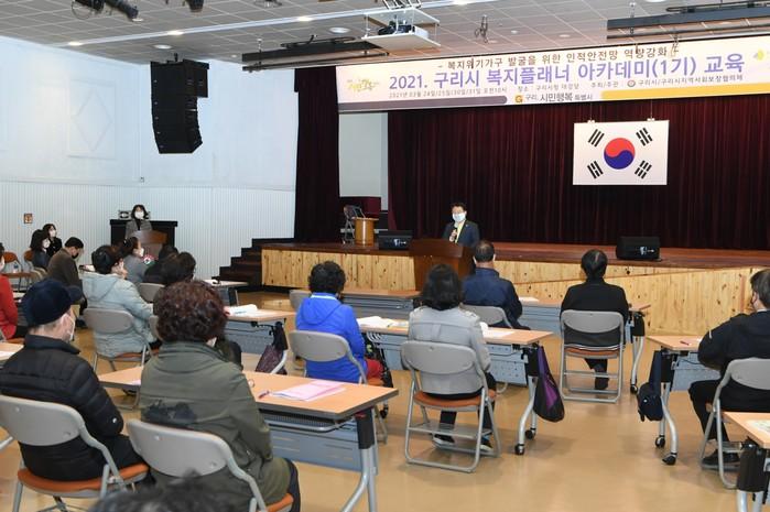 경기 구리시가 24~31일 시청 대강당에서 구리시명예사회복지공무원, 동 지역사회보장협의체 위원을 대상으로 복지 사각지대에 있는 주민에게 다가갈 수 있는 대화기법과 관계 형성법 등 동 인적 안전망으로 활동 시 필요한 내용으로 구성된 '복지 플래너 아카데미 1기' 교육을 총 4회에 걸쳐 운영한다. 사진은 24일 교육 진행에 앞서 안승남 시장이 인사말을 전하는 모습. (사진제공=구리시청)