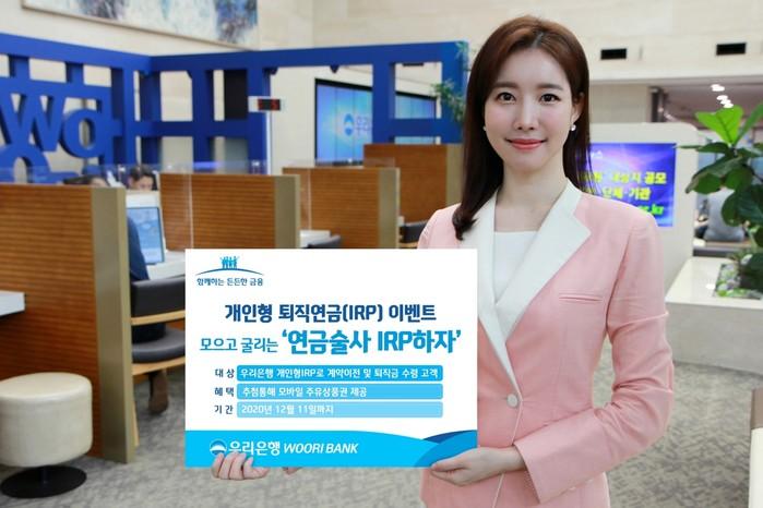 [시민일보 = 홍덕표 기자] 우리은행이 개인형 퇴직연금(IRP) 계약이전 및 퇴직금 수령 고객을 대상으로 모으고 굴리는 '연금술사 IRP하자!'이벤트를 오는 12월11일까지 진행한다.