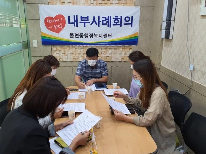 경기 동두천시 불현동행정복지센터는 최근 복합적인 위기상황에 놓인 홀몸노인과 한부모 가족 등 2가구에 맞춤형 복지서비스를 제공하기 위해 내부사례회의를 개최했다. 사진은 회의가 진행 중인 모습. (사진제공=동두천시청)