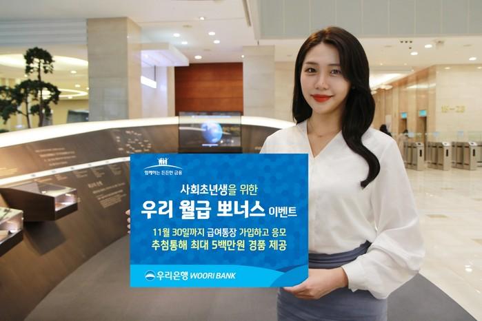 [시민일보 = 홍덕표 기자] 우리은행은 코로나19로 취업난이 가중되는 상황에서도 취업에 성공한 사회초년생을 위한 '우리 월급 뽀너스'이벤트를 오는 11월30일까지 진행한다고 밝혔다.