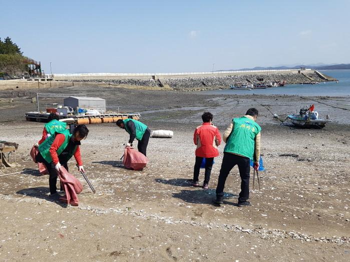 충남 홍성군 서부면 새마을부녀회원 등 10여명은 죽도를 이용하는 관광객과 주민들에게 쾌적한 환경을 제공하기 위해 죽도마을 둘레길을 비롯한 마을 곳곳을 다니며 방치돼 있던 쓰레기를 수거했다. 사진은 회원들이 쓰레기를 수거하고 있는 모습. (사진제공=홍성군청)