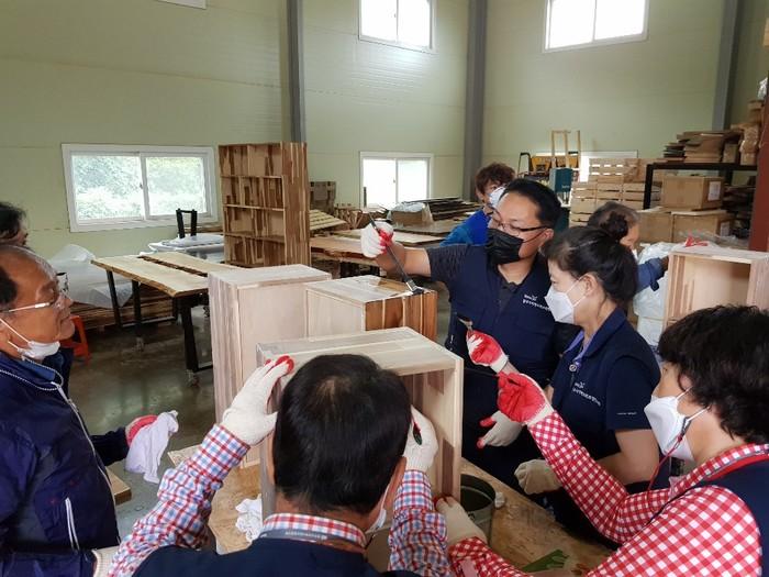 경기 양주시 백석읍 지역사회보장협의체는 최근 지역내 저소득 한부모가정 5가구를 대상으로 ‘꿈 키움 마음 키움’ 행사를 개최했다. 이 행사를 통해 저소득 한부모가정 아동에게 안정된 학업 공간을 제공하기 위해 책상·책장 등을 지원한다. 사진은 협의체 위원들이 가구를 제작하고 있는 모습. (사진제공=양주시청)