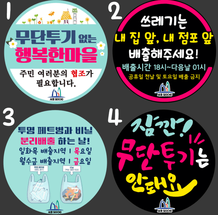 조은희 구청장은 “쓰레기 무단투기 근절은 성숙된 주민의식을 통해 가능하다”며 “앞으로도 지속적인 무단투기 단속과 함께 다양한 홍보 및 계도를 적극 추진하여 올바른 쓰레기 배출문화를 정착시키겠다”고 말했다.