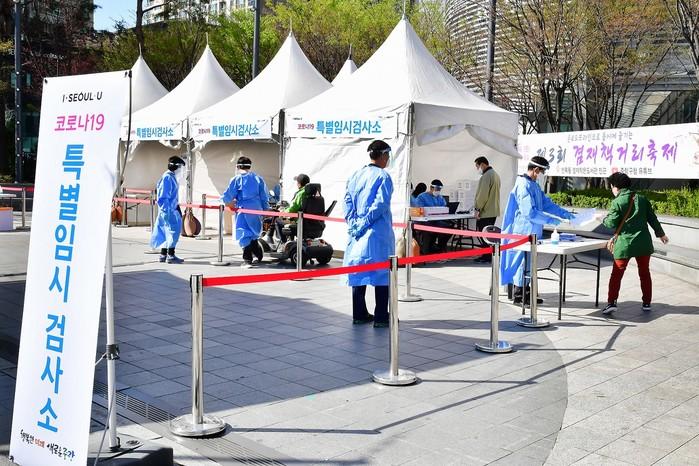 서울 중랑구가 오는 9일까지 망우역 광장에서 코로나19 특별임시검사소를 운영한다. 운영시간은 오전 9시~오후 5시이며 글로브 월 검체채취 부스가 설치된 워크스루 검사소로 운영된다. 사진은 특별임시검사소가 운영되고 있는 모습. (사진제공=중랑구청)