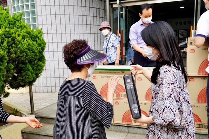 인천 동구는 최근 동국제강·송원문화재단에서 후원한 사랑의 생활지원금과 명절 선물세트를 지역내 저소득 노인 80명에게 전달했다. 사진은 이날 화수2동행정복지센터에서 동 직원들이 재단으로부터 전달받은 물품을 배부하고 있는 모습. (사진제공=인천 동구청)