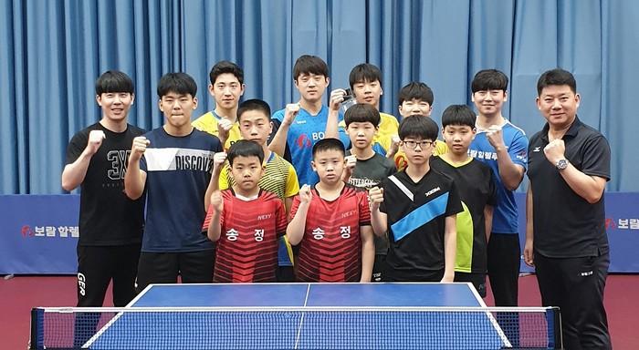 이날 송정초등학교 탁구팀을 이끄는 임재록 코치는 소속 선수들과 함께 보람할렐루야 탁구단의 훈련장인 보람상조천안연수원에 방문했다. 오광헌 감독을 주축으로 한 보람할렐루야 선수들의 시범경기 및 1대1 맞춤형 강습 등 체험학습 시간을 가졌다.