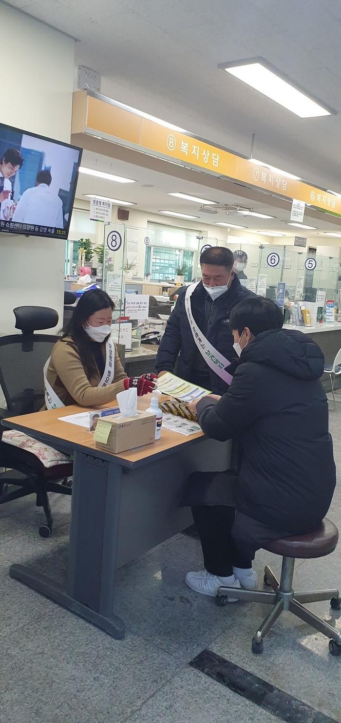 경기 오산시 중앙동행정복지센터가 지난 8일부터 오는 29일까지 '해뜰 두드림'을 운영한다. 해뜰 두드림단은 동 특화사업으로 명예사회복지공무원인 동지역사회보장협의체 위원 및 중앙동 통장 등이 참여해 복지사각지대 발굴을 위한 복지통합 상시 상담창구 운영 및 캠페인 활동을 펼치는 사업이다. 사진은 상담창구 운영 모습. (사진제공=오산시청)