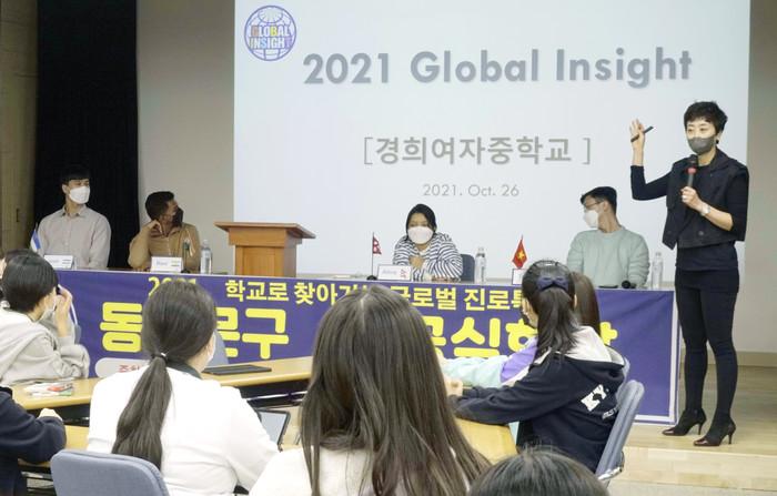 | ▲ 26일 경희여자중학교에서 진행된 다국적 소통 프로그램인 ‘학교로 찾아가는 글로벌 진로특강’ 진행 모습. (사진제공=동대문구청) |