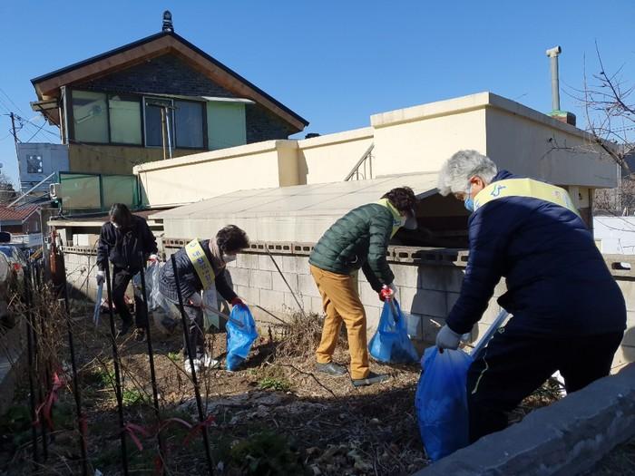 경기 수원시 팔달구 행궁동은 최근 남수동 일원에서 통장, 반장, 주민 등 10명이 참여한 가운데 환경 정비활동을 펼쳤다. 행궁동에서는 ‘365 우리동네 환경지킴이’라는 이름을 걸고, 관 주도가 아닌 단체원과 자원봉사자 등 주민들로 구성해 지역내 지속되는 쓰레기 문제를 해결하고자 여러 활동을 추진하고 있다. 사진은 참여자들이 쓰레기를 수거하는 모습. (사진제공=팔달구청)