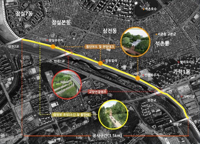 박성수 구청장은 “송파둘레길 중 장지천과 한강을 잇는 7.4㎞ 탄천길 조성에 대한 구민들의 기대감이 크다”며, “송파구 구석구석을 이어주는 보행자 친화적인 순환형 수변 산책로를 완성해 자연과 인간이 공존하는 도심 속 힐링의 둘레길을 만들것”이라고 밝혔다.