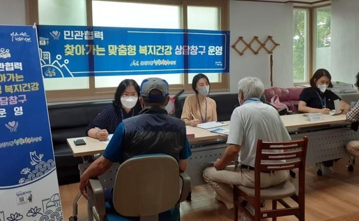 충남 아산시 온양1동행정복지센터가 최근 찾아가는 보건·복지 상담 창구를 운영했다. 이날 상담 창구에서는 지역내 취약계층 저소득 노인 10명에게 복지상담·치매조기검진 및 의료상담 등이 제공됐으며, 아산시기초푸드뱅크에서 지원된 물품을 지원했다. 사진은 온천7통경로당에서 지역내 노인들이 복지상담을 받고 있는 모습. (사진제공=아산시청)