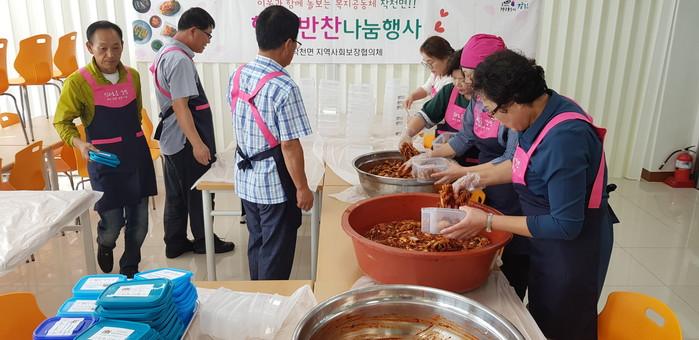 전남 강진군 작천면 지역사회보장협의체는 최근 홀몸노인과 장애인 저소득 가구를 대상으로 ‘행복반찬 나눔 행사’를 개최했다. 이날 협의체 위원들은 직접 배추김치, 장조림, 오징어젓갈 등의 반찬을 만들어 전달했다. 사진은 전달할 반찬을 담는 모습. (사진제공=강진군청)