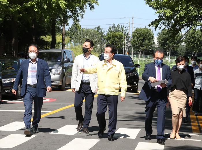 정순균 서울 강남구청장은 지난 22일 일원2동 및 일원본동을 방문해 ‘미미위데이트’에서 구민들과 소통한 생활불편 및 민원사항을 확인하고 조치과정을 살폈다. 사진은 정 구청장이 관계자들과 개포자이아파트 주변을 둘러보고 있는 모습. (사진제공=강남구청)