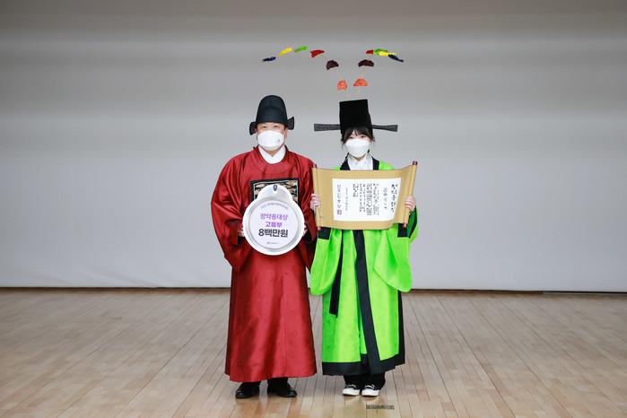 경기 남양주시는 지난 20일 ‘제2회 정약용 인문학 콘서트’ 시상식을 개최해 흠흠신서상 9명, 목민심서상 8명, 정약용대상 1명 등 총 18명에게 상장 및 부상을 수여했다. 사진은 조광한 시장(왼쪽)이 정약용대상 수상자와 기념촬영을 하는 모습. (사진제공=남양주시청)
