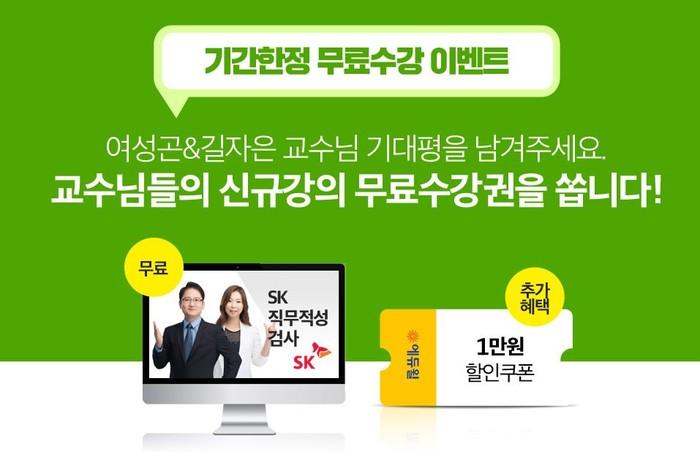 에듀윌에 따르면 대기업 인적성 전문가 여성곤 교수와 길자은 교수가 새롭게 입성한 가운데, 기대평 댓글만 남겨도 최신 강의 무료 수강권을 제공한다. 여기에 추가 혜택으로 1만원 할인 쿠폰을 제공하고 있다.