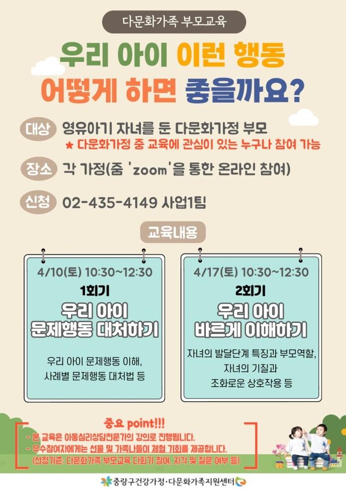 | ▲ 다문화가족 부모교육 프로그램 안내문.(사진제공=중랑구청) |