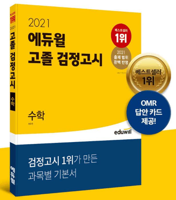 1위는 ‘2021 에듀윌 고졸 검정고시 수학’ 교재가 올랐으며, 2위부터 2021 국어, 과학, 영어, 사회, 한국사, 도덕, 2020 검정고시 기출문제집, 핵심총정리 등의 교재가 9위까지 이름을 올렸다.