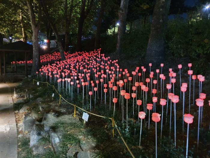 선유도 입구 가로공원에 도착하면 색색으로 물든 천송이 장미 조명이 눈길을 사로잡는다.