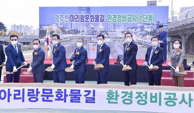 광주광역시는 17일 임동 광주천 두물머리에서 이용섭 시장, 김용집 광주시의회 의장, 시의원, 구청장, 시민 등 100여 명이 참석한 가운데 광주천 아리랑 문화물길 조성 환경정비공사(1단계) 착공식을 개최했다.