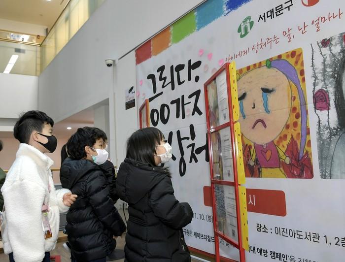 | ▲ 지난해 11월 서대문구 아동권리주간 그림 전시회를 관람하고 있는 어린이들의 모습. (사진제공=서대문구청) |