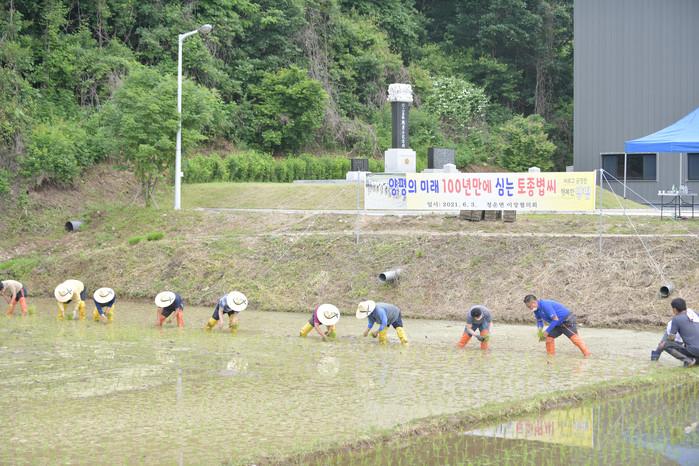 경기 양평군 청운면이장협의회에서는 3일 여물리 일원 농경지 2479㎡에서 사랑나눔 모내기 행사를 개최해 토종볍씨로 모내기를 진행했다. 이날 심은 모는 가을 추수 후 지역내 홀몸노인 등 어려운 이웃들에게 전달될 예정이다. 사진은 참여자들이 모내기를 하고 있는 모습. (사진제공=양평군청)
