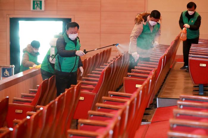 서울 성동구는 신종 코로나바이러스 감염증(우한폐렴) 확산 방지를 위해 11일 소월아트홀 공연장, 로비, 무대시설 등을 대상으로 살균소독제를 분사하는 방식으로 '긴급 방역작업'을 했다. 사진은 살균 소독제를 분사하고 있는 모습. (사진제공=성동구청)