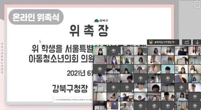 | ▲ 제4대 강북구 아동·청소년의회 온라인 위촉식 모습. (사진제공=강북구청) |