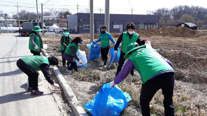 경기 이천시 중리동 새마을남녀협의회 30여명은 최근 지역내 공원 및 버스승강장을 방역한 후 '봄맞이 국토대청소'의 일환으로 고담동, 단월동 등 하천변 및 농로에 방치돼 있는 각종 생활쓰레기, 폐비닐 등을 수거했다. 사진은 쓰레기를 수거하는 회원들의 모습. (사진제공=이천시청)