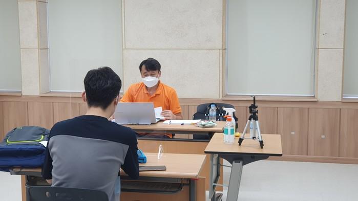 | ▲ 1대1 모의면접 컨설팅이 코로나19 방역 수칙을 준수해 진행되고 있는 모습. (사진제공=동대문구청) |