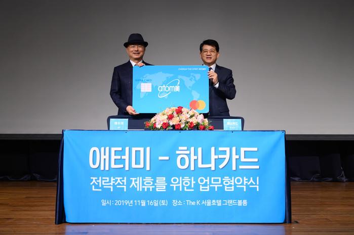 [시민일보 = 여영준 기자] 하나카드는 국내 최다 회원을 보유한 직접판매사인 ‘애터미 주식회사(이하 애터미)’와 지난 16일 서울 양재동 더케이호텔에서 ‘하나카드-애터미 제휴카드 출시 및 금융서비스 제공을 위한 업무협약’을 체결했다고 18일 밝혔다.