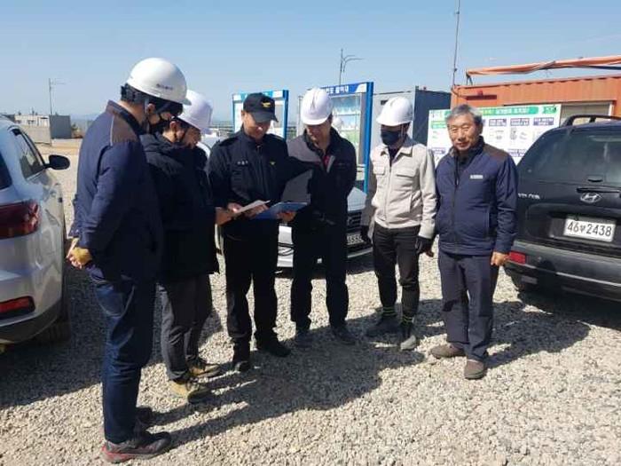 전남 영광소방서는 최근 대형공사장의 안전사고 예방을 위해 공사 현장에 방문해 현장 안전관리 실태를 파악하고, 공사장 관계자들을 대상으로 소방안전에 대한 경각심을 고취시키기 위해 소방안전교육을 했다. 사진은 현장지도를 하는 모습. (사진제공=영광소방서)